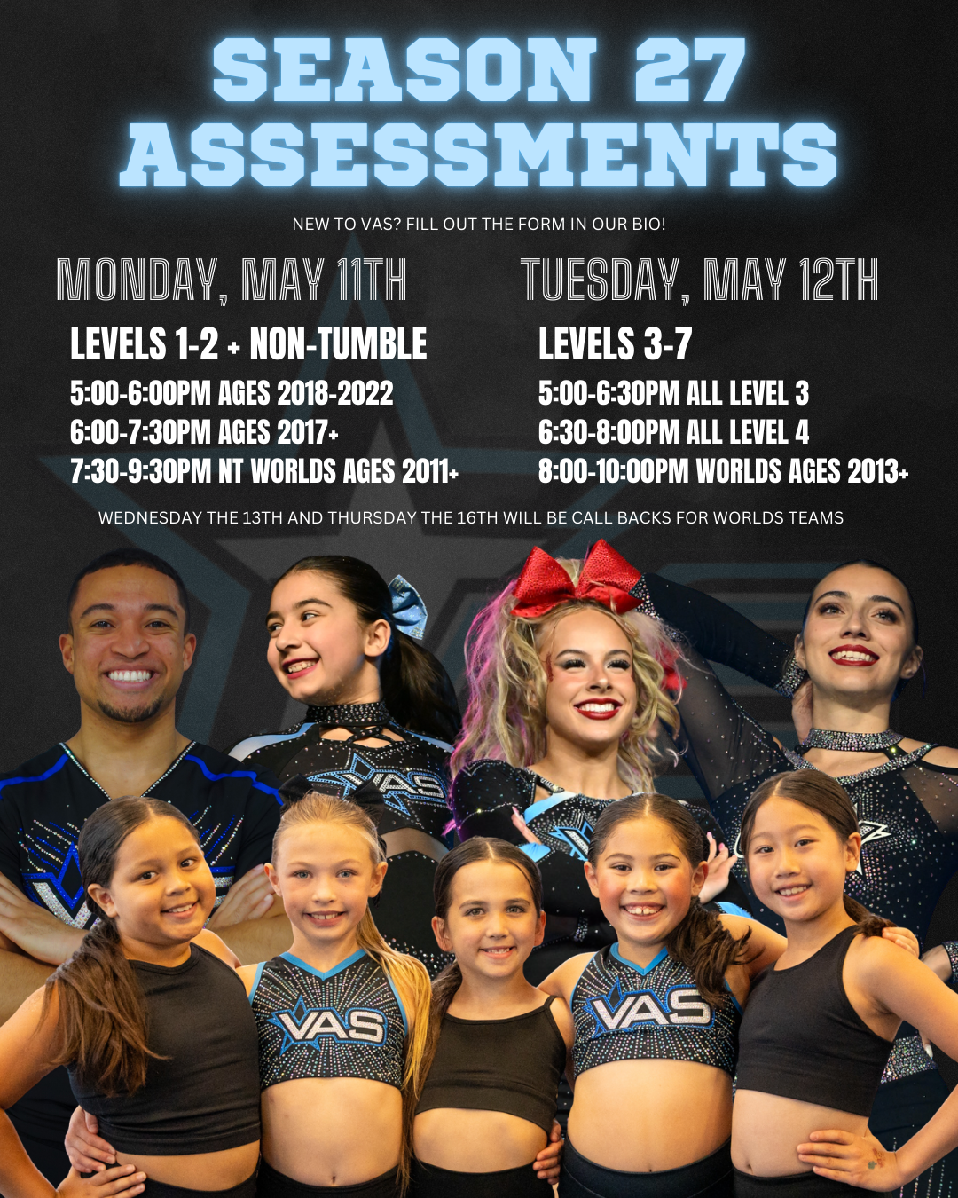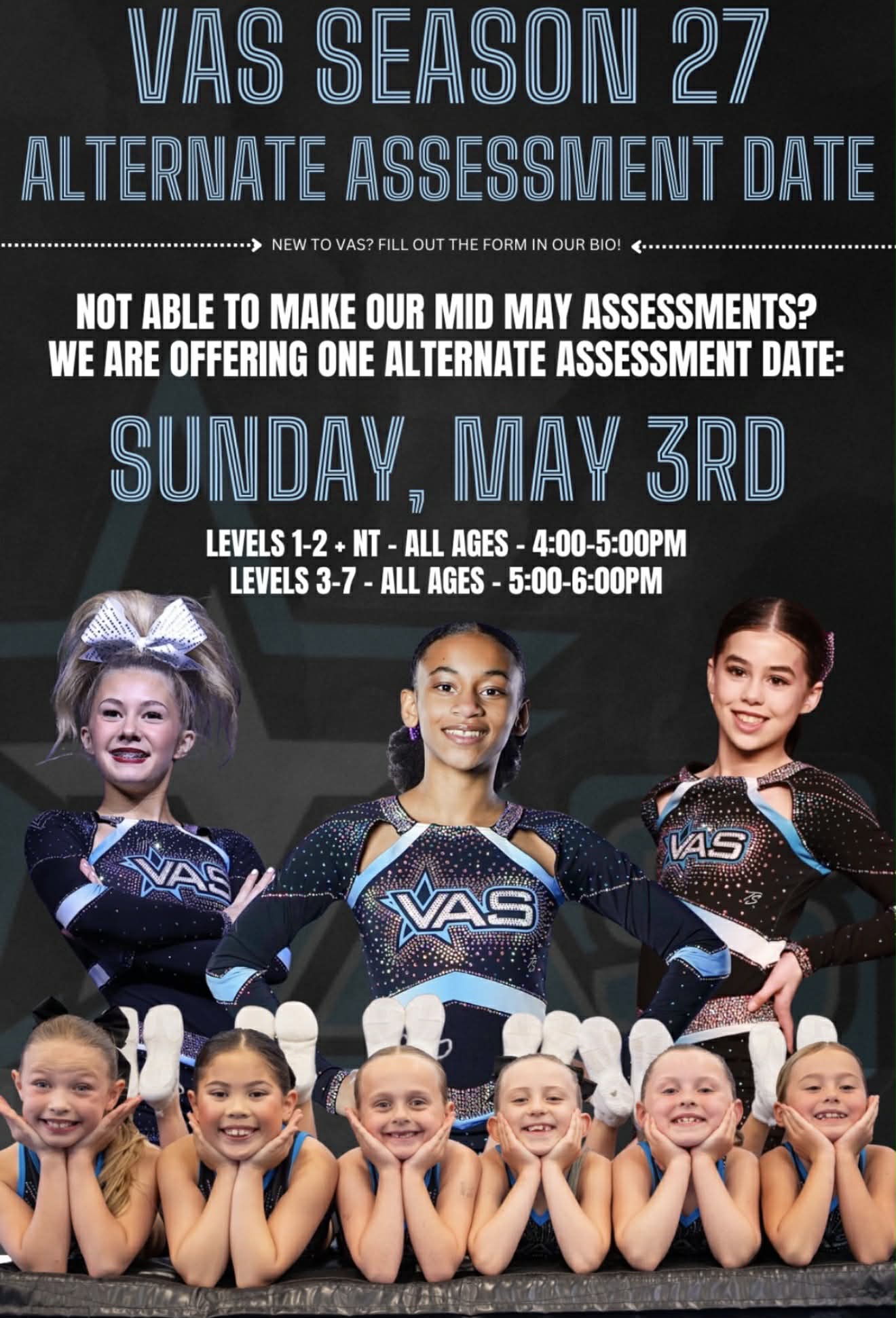 If you’re unable to make the dates above, our ALTERNATE ASSESSMENT DATE is set for May 3rd: